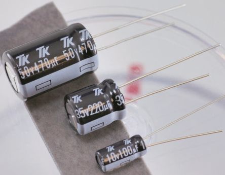 Toshin Kogyo 470μF 25V dc Aluminium Electrolytic Capacitor, Through Hole 10 (Dia.) x 12.5mm +105°C 10mm 5mm [1EUTWE471M]; 156-510