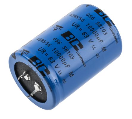 Vishay 10000μF 63V dc Aluminium Electrolytic Capacitor, Through Hole 35 (Dia.) x 50mm +85°C 35mm 10mm [MAL205658103E3]; 180-2093