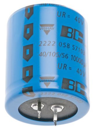 Vishay 10000μF 40V dc Aluminium Electrolytic Capacitor, Through Hole 35 (Dia.) x 40mm +105°C 35mm 10mm [MAL205857103E3]; 166-8023