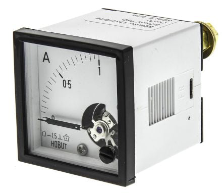HOBUT D48MC Analogue Panel Ammeter 0/1A For Shunt 75mV DC, 48mm x 48mm Moving Coil [D481MCS75MV/4-001 0/1A]; 313-485
