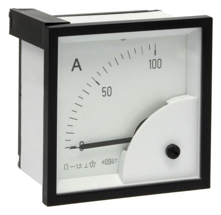 HOBUT D72MC Analogue Panel Ammeter 0/100A For Shunt 75mV DC, 72mm x 72mm Moving Coil [D72MC75MV/0-100A]; 914-5418