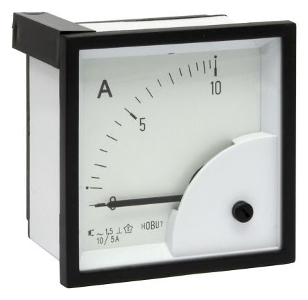 HOBUT D72SD Analogue Panel Ammeter 0/10A For 10/5A CT AC, 72mm x 72mm Moving Iron [D72SD5A/0-10A]; 914-5367