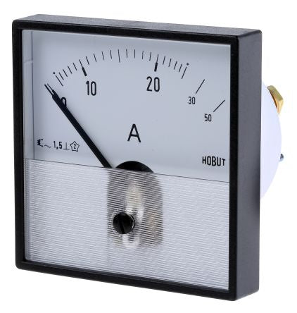 HOBUT Analogue Panel Ammeter 0/25/50A Direct Connected AC, 72mm x 72mm Moving Iron [PD72MIS25A2/1-001]; 287-2059