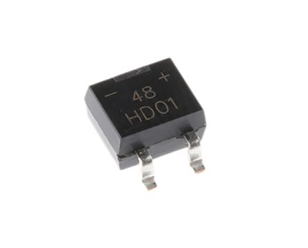 Diodes Inc HD01-T, Bridge Rectifier, 800mA 100V, 4-Pin MiniDIP SMD [HD01-T]; 122-0253