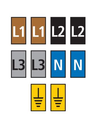 HellermannTyton WIC Snap On Clip On Cable Marker, Pre-printed "EARTH, L1, L2, L3, N", assorted colours, 4.3 → [561-03300]; 219-2277