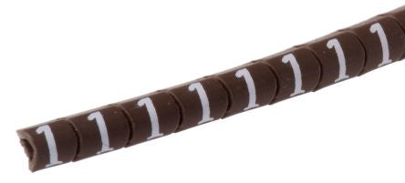 HellermannTyton Helagrip Slide On Cable Marker, Pre-printed 1 White on Brown 1 → 3mm Dia. Range [901-10268]; 391-255