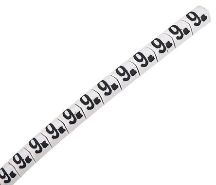 HellermannTyton Helagrip Slide On Cable Marker, Pre-printed 9 Black on White 1 → 3mm Dia. Range [901-10567 909-3054-PVC (1000)]; 909-3054