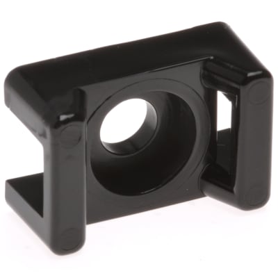 The cable tie mount in black is applied with a #6 (M3) screw and is 0.43" (10.9 mm) wide. It is made of weather-resistant nylon 6.6, which increases mechanical strength, heat and wear resistance, and stiffness in outdoor environments. It comes in packages of 100.