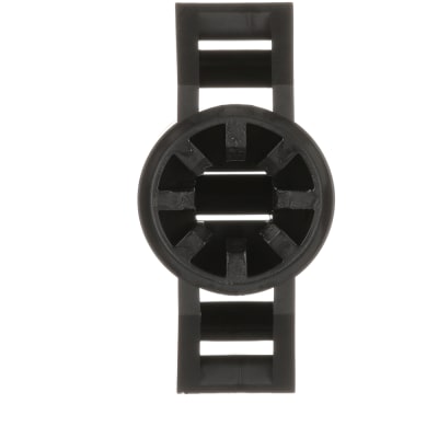 The cable tie mount in black is installed onto a 0.44" (11mm) stud. It is made of impact-modified weather-resistant nylon 6.6, which increases mechanical strength, heat and wear resistance, and stiffness in outdoor environments. It comes in packages of 500.
