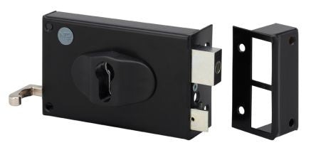 Dom Metalux Steel Black Rim Lock, Key to unlock [9770 - FE97701070]; 212-3850