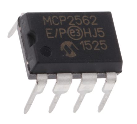 Microchip MCP2562-E/P, CAN Transceiver 1MBps 1-Channel IEC 61000-4-2, 8-Pin PDIP [MCP2562-E/P]; 146-0216