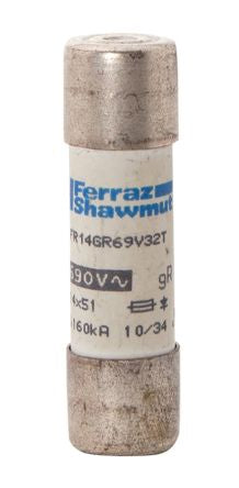 Mersen, 32A Cartridge Fuse, 14 x 51mm [Q1017189J]; 136-0512