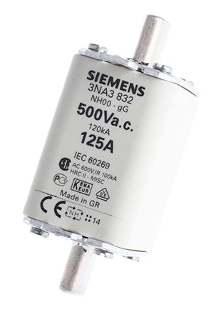 Siemens 125A 00 NH Centred Tag Fuse, gG, 500V ac [3NA3832]; 396-118