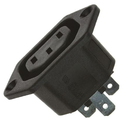TE Connectivity SR Series IEC Connector Flange Mount Socket, 2P, Quick Connect Termination, 15A, 250 V [6ESRF-3]; 782-8105