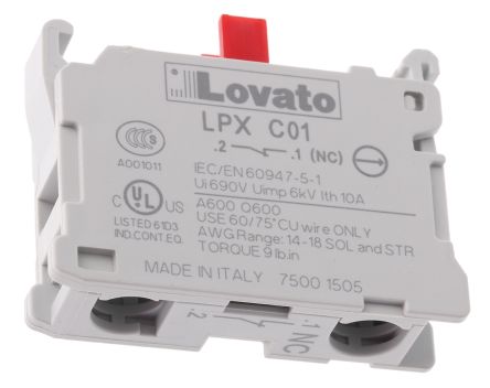 Lovato Platinum 22mm Contact Block 1NC Screw terminal [LPXC01]; 790-3408