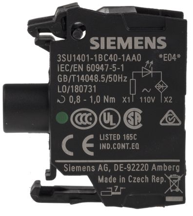 Siemens SIRIUS ACT Light Block LED Green 110 V ac Screw terminal [3SU1401-1BC40-1AA0]; 173-6827