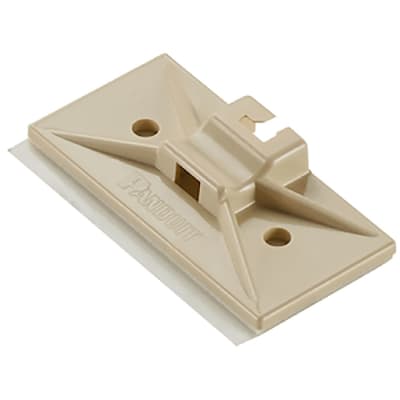 Panduit The snap-in cable tie mount in ivory is applied with rubber adhesive tape. It is made of ABS for indoor environments. It comes in packages of 100. [SMS-A-C15]; PAO913