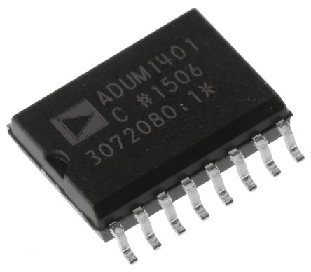 ADUM1401CRWZ Analog Devices, PCB SMT, 4-Channel Digital Isolator 90MBps, 2.5 kV, 16-Pin SOIC W [ADUM1401CRWZ]; 106-7033