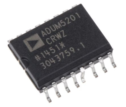 ADUM5201CRWZ Analog Devices, PCB SMT, 2-Channel Digital Isolator 25MBps, 2.3 kV, 16-Pin SOIC [ADUM5201CRWZ]; 709-8398