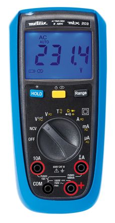 Metrix MTX203 Handheld Digital Multimeter, 10A ac 750V ac 10A dc 1000V dc [MTX203-Z]; 913-2395