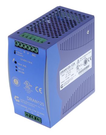 Chinfa, DRAN120 DIN Rail Panel Mount Power Supply, 12V dc Output Voltage, 10A Output Current [DRAN120-12A]; 789-4007