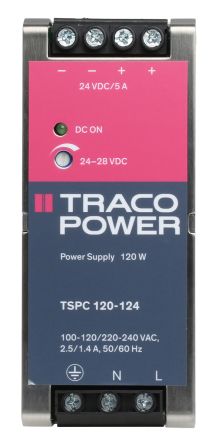 TRACOPOWER, TSPC DIN Rail Panel Mount Power Supply, 24V dc Output Voltage, 5A Output Current [TSPC 120-124]; 725-9120