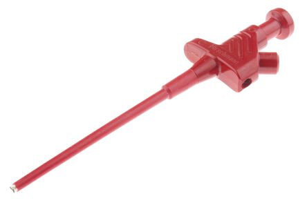 Hirschmann Test & Measurement 4A Red Grabber Clip, 60V Rating - 3.5mm Tip Size, 4mm Probe Socket Size [930113101]; 423-633