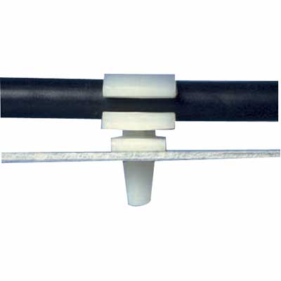 Push barb mount cord clip, .38" (9.7mm) bundle, natural, standard package.