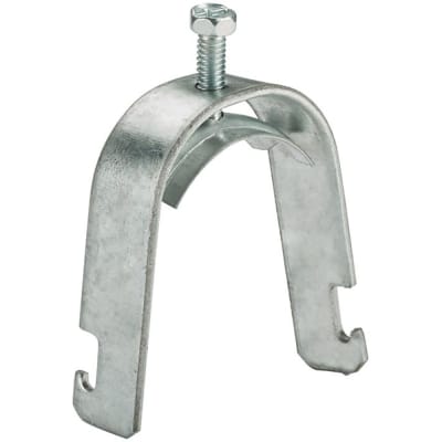 One-piece strut clamp with saddle used to secure 1/2" conduit, 50 lbs. static load capacity.