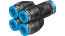 Festo Double Y Tube-to-Tube Adaptor Push In 6 mm to Push In 4 mm to Push In 4 mm to Push In 4 mm to Push In 4 mm, QSQ