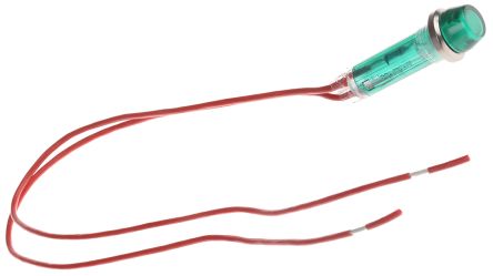 CAMDENBOSS Green neon Indicator, 240 V, 8mm Mounting Hole Size, Lead Wires Termination [IND5032405-240-T/GRN]; 576-197
