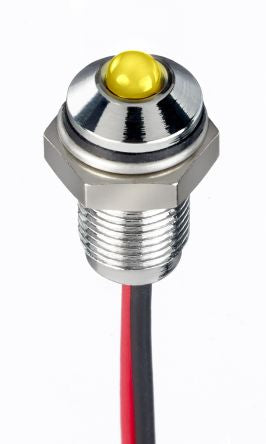 RS PRO Yellow Panel LED, 1.8 → 3.3 V dc, 6mm Mounting Hole Size, Lead Wires Termination, IP67; 171-3750