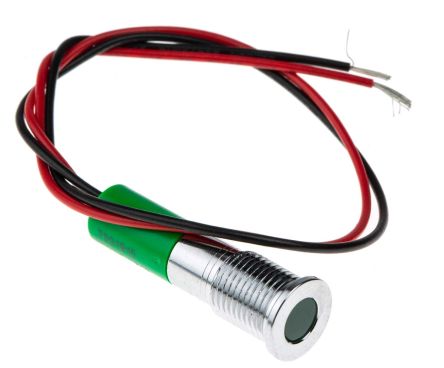 RS PRO Green Indicator, 12 V dc, 8mm Mounting Hole Size, Lead Wires Termination, IP67; 700-1915