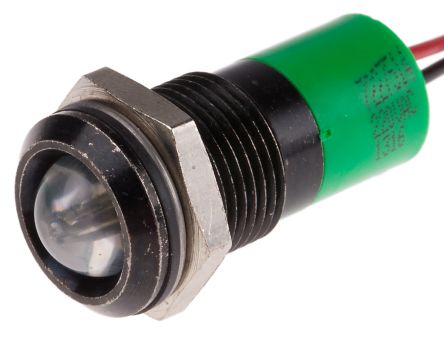 RS PRO Green Indicator, 220 V ac, 14mm Mounting Hole Size, Lead Wires Termination, IP67; 722-7514