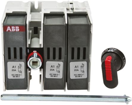 ABB 20 A 4P Fused Isolator Switch, A1 Fuse Size [1SCA108796R1001]; 686-7389