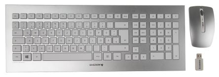 Cherry Silver, Silver/White Wireless QWERTZ Keyboard and Mouse Set [JD-0310DE]; 175-9891