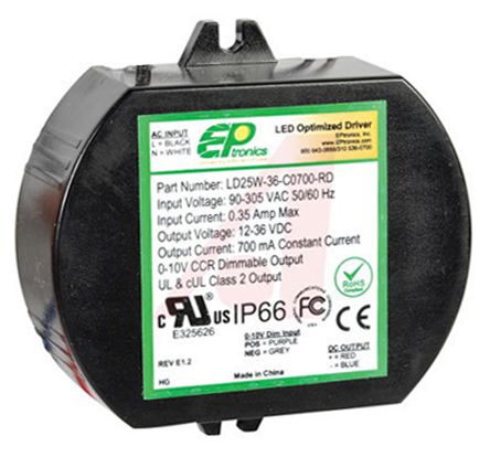 EPtronics INC. LD25W-24-C1040-LE, Constant Current Triac LED Driver 25W 24V 1.04A, LD25W Series [LD25W-24-C1040-LE]; 909-1156