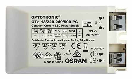 Osram OTE 18/220-240/500 PC, Constant Current Leading Edge LED Driver Module 18W 18 → 36V 500mA [OTE 18/220-240/500 PC]; 893-0568