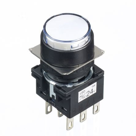 White Round Push Button Switch [LB1L-M1T64PW]; 170-3613