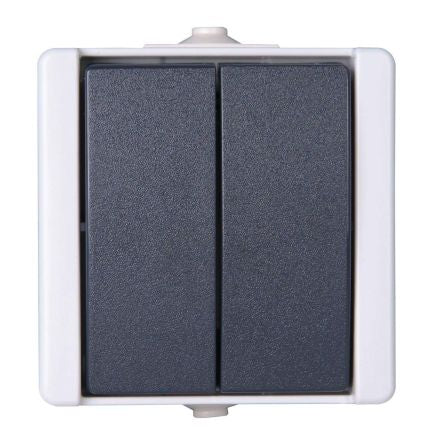 Grey Intermediate IP44 Light Switch Light Grey, 1 Way Screwless, 2 Gang, 250 V Not Illuminated IP44 Thermoplastic [540556009]; 150-4086