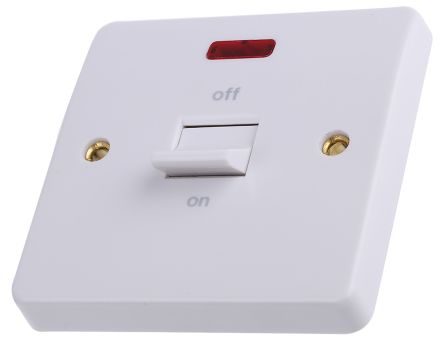 White 32 A Flush Mount Rocker Light Switch MK White 7 mm Screwed Semi Gloss, 1 Gang BS Standard 86mm Neon IP2X [K5105 WHI]; 267-6463