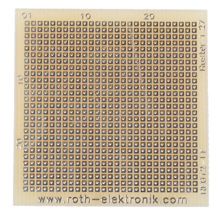 RE012-LF, Single Sided Matrix Board FR4 with 27 x 27 0.45mm Holes, 1.27 x 1.27mm Pitch, 39.37 x 38.1 x 1.5mm [RE012-LF]; 897-1391