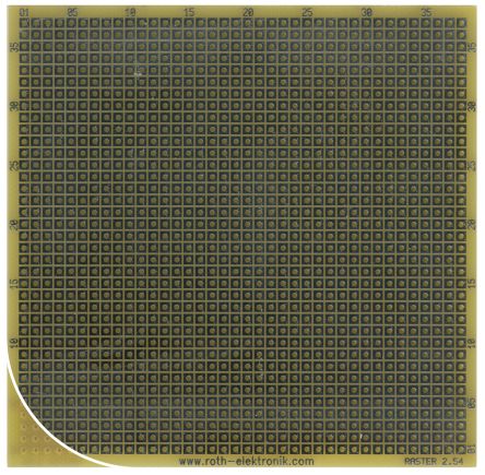 RE017-LF, Single Sided Matrix Board FR4 with 37 x 38 1mm Holes, 2.54 x 2.54mm Pitch, 100.97 x 99.06 x 1.5mm [RE017-LF]; 897-1411