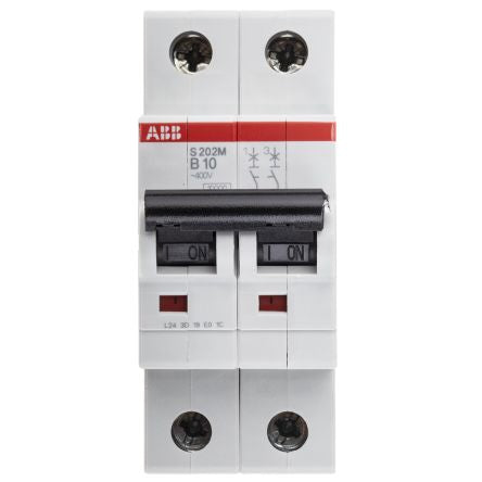 ABB System M Pro S200 MCB Mini Circuit Breaker 2P, 10 A, 10 kA, Curve B [2CDS272001R0105 - S202MB10]; 131-911