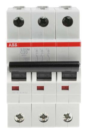 ABB System M Pro S200 MCB Mini Circuit Breaker 3P, 20 A, 10 kA, Curve C [2CDS273001R0204]; 535-4295