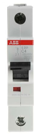 ABB System M Pro S200 MCB Mini Circuit Breaker 1P, 4 A, 6 kA, Curve C [S201-C4]; 746-7652