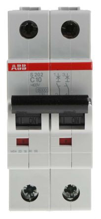 ABB System M Pro S200 MCB Mini Circuit Breaker 2P, 10 A, 6 kA, Curve C [S202-C10]; 746-7719