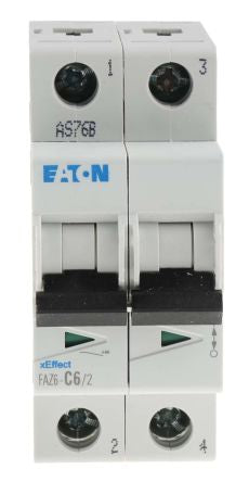 Eaton xEffect FAZ6 MCB Mini Circuit Breaker 2P, 6 A, 6 kA, Curve C [FAZ6-C6/2]; 769-4719