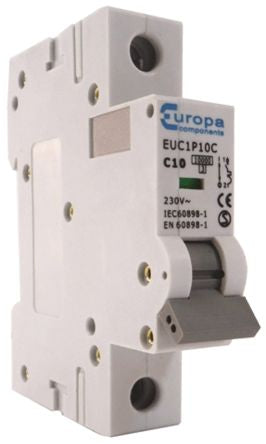Europa EU EUC MCB Mini Circuit Breaker 1P, 10 A, 10 kA, Curve C [EUC1P10C]; 849-6503