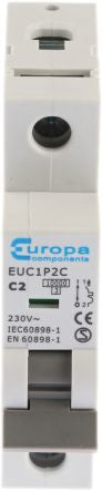 Europa EU EUC MCB Mini Circuit Breaker 1P, 2 A, 10 kA, Curve C [EUC1P2C]; 849-6496